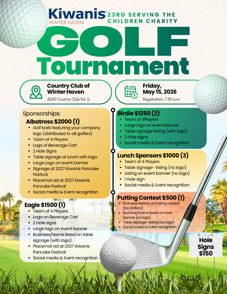 23rd Annual Serving the Children Charity Golf Tournament at the Country Club of Winter Haven, May 15th.
